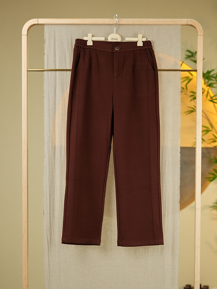 锦羊毛面料蚕丝拉绒女裤 9133·安哥拉红